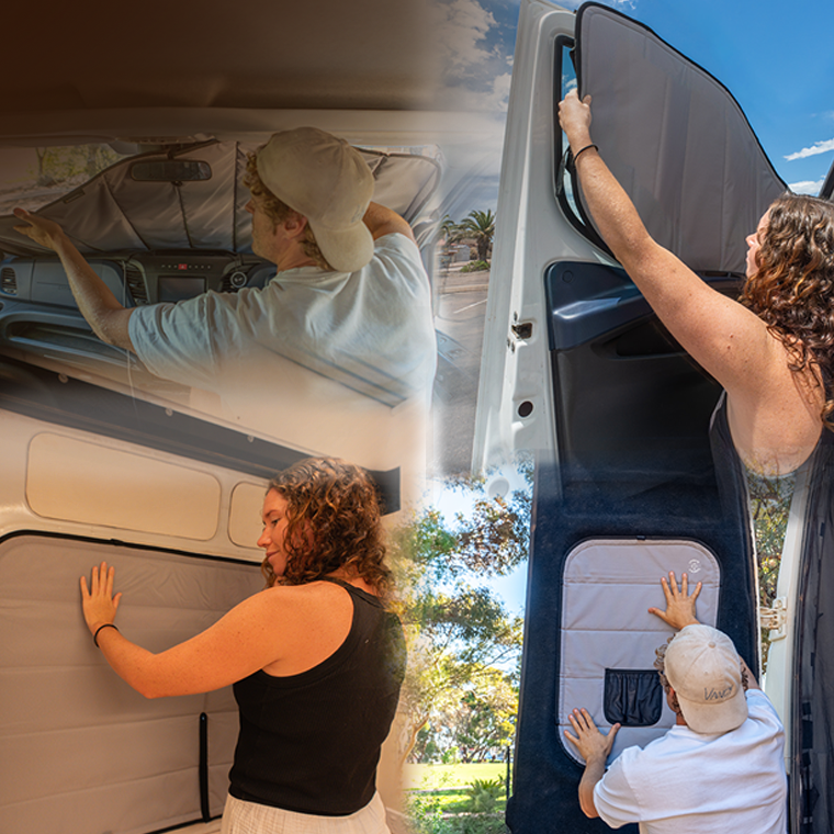 SHOP WINDOW COVERSShield your campervan from extreme weather with UV50+ insulated window covers, offering temperature regulation, complete privacy, and blackout features—ideal for van lifers prioritizing comfort in any season.