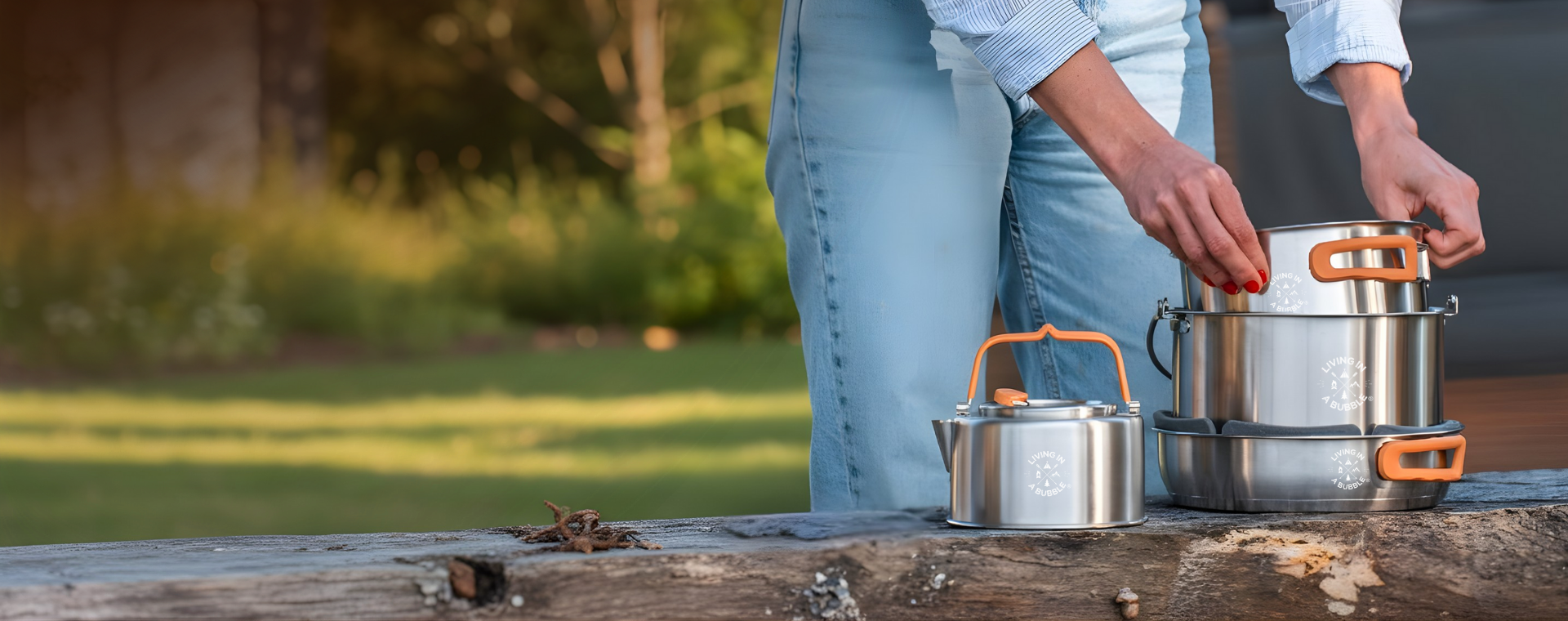 Too many clanging pots and pans cluttering your tiny kitchen? The Living In A Bubble Premium 7-Piece Cooking Set is a compact and stackable cookware that is also chef-grade but without the annoying rattling noise while driving.