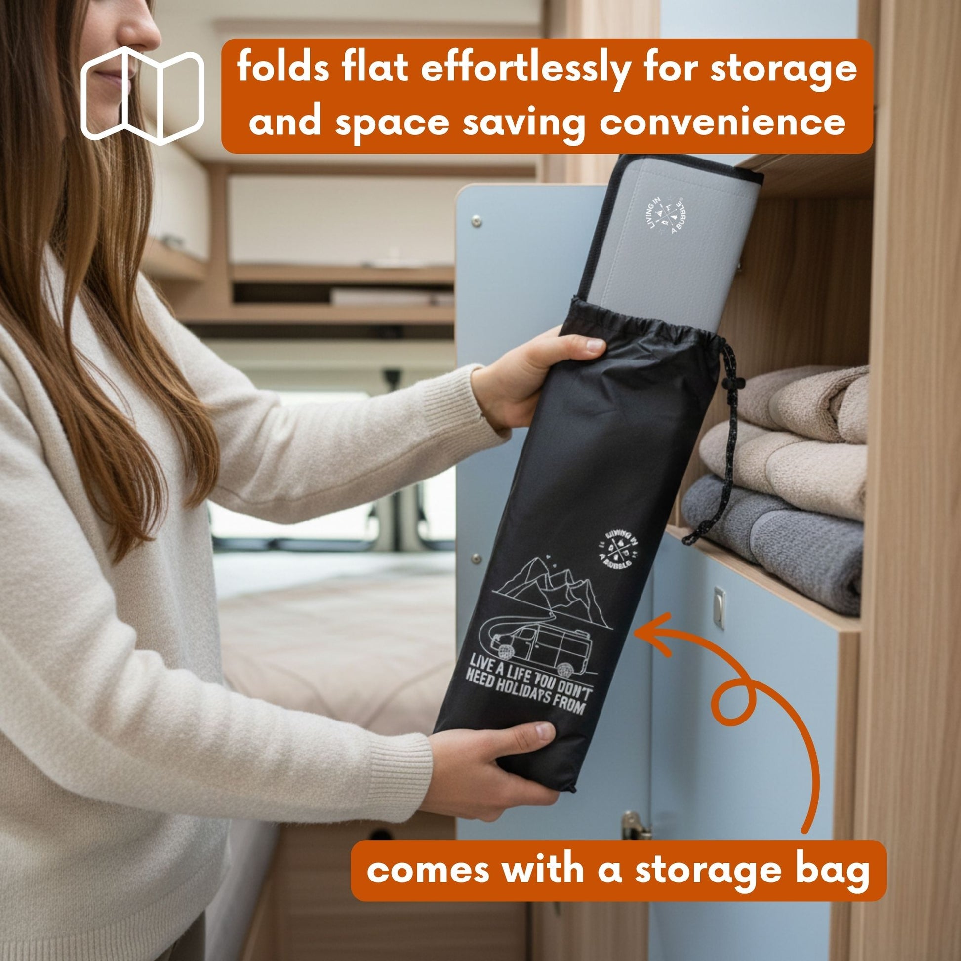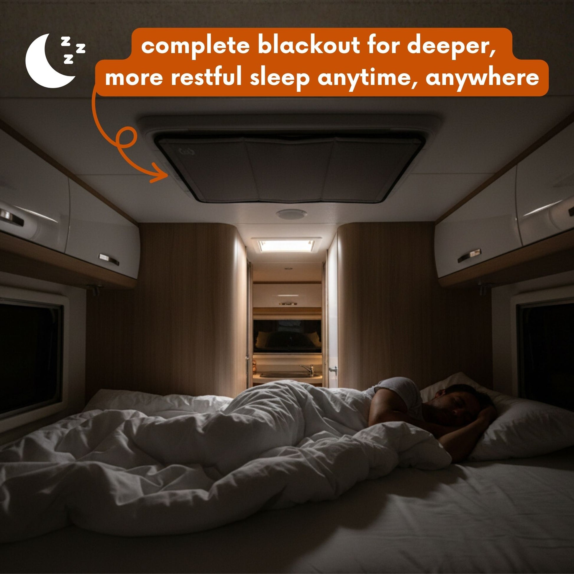 Sleep better inside your home-on-wheels with Living in a Bubble insulated blackout skylight cover, designed for complete light control. No more unwanted morning light!
