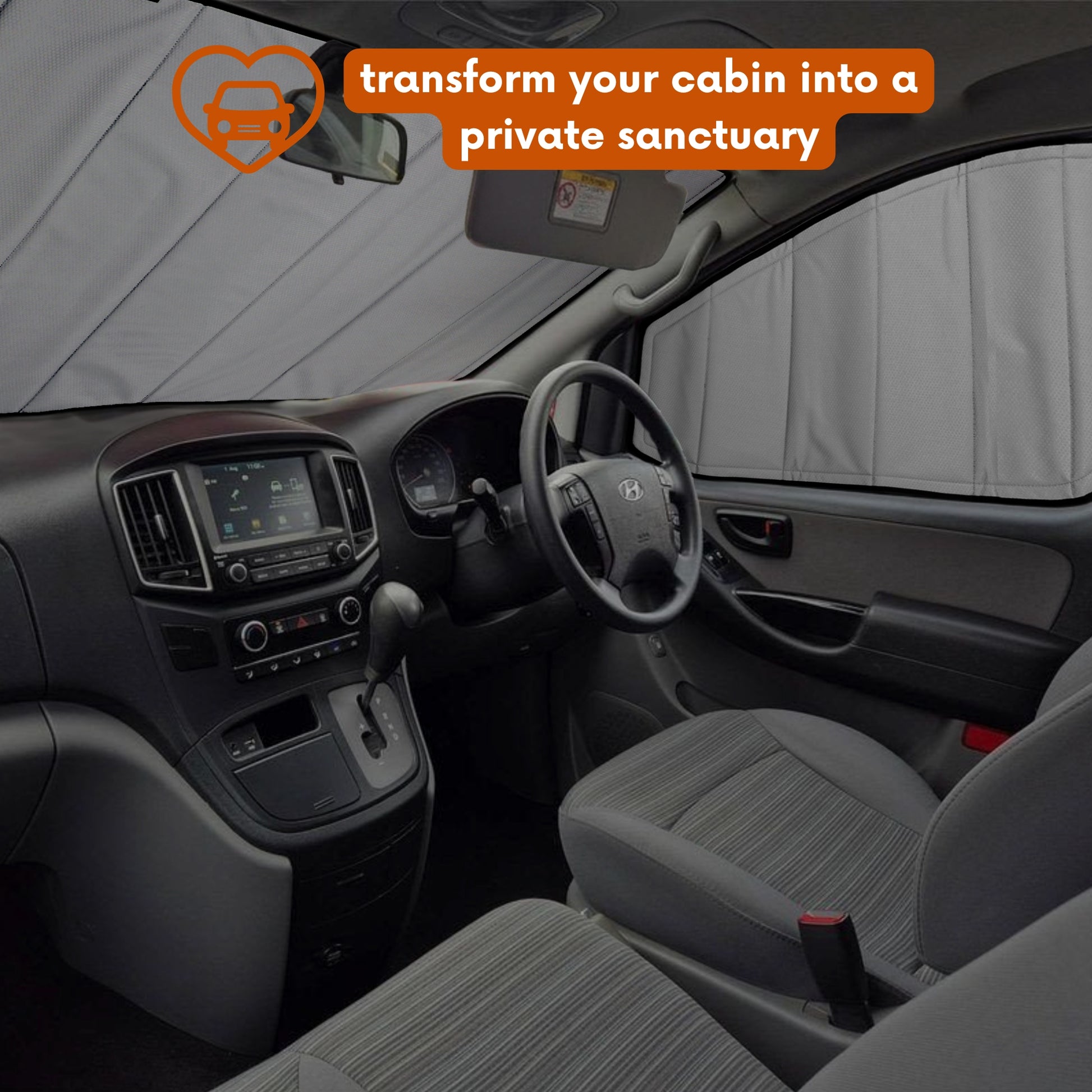 Achieve your best sleep yet with these premium blackout window covers! They will revolutionize your campervan sleep, ensuring a restful night and ultimate privacy. Blocking out 100% of light, these window covers will keep your van pitch black and fully private.