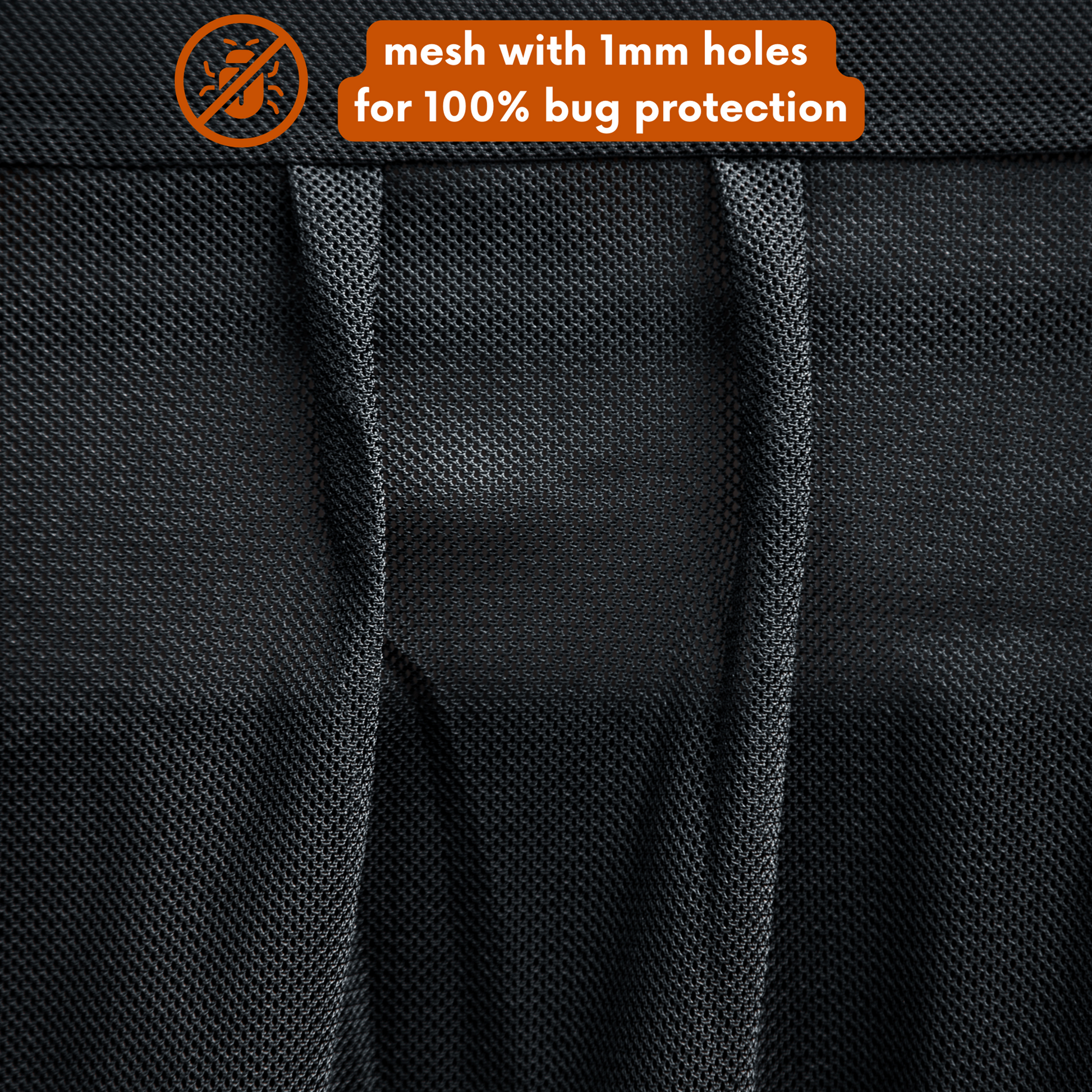 - Mosquitoes, midges, flies, no-see-ums and bug proof mesh with 1mm holes;