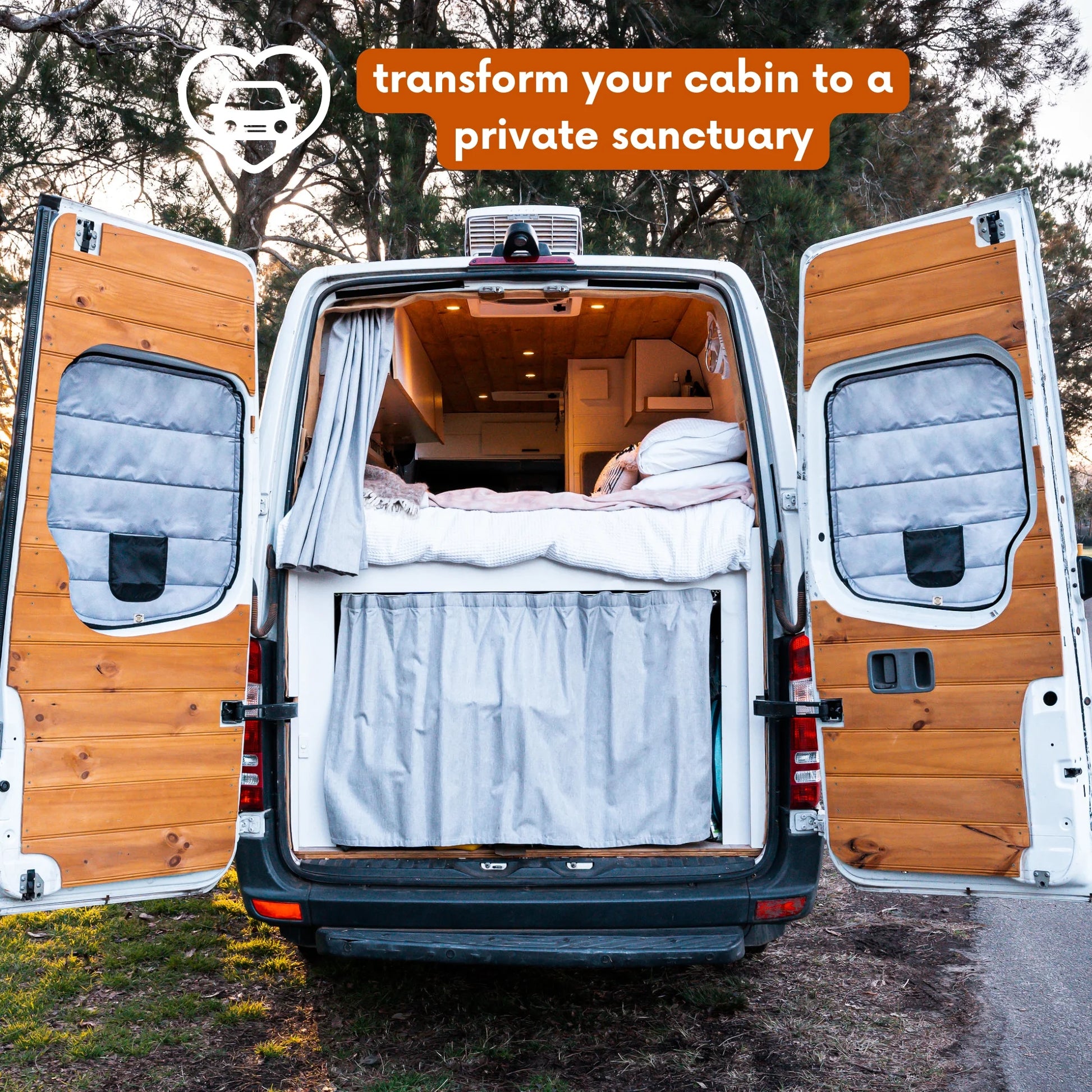 Transform your van into a cozy, all-season home with our premium insulated campervan window covers. Designed for optimal vanlife comfort, these magnetic window covers provide superior temperature regulation, keeping your campervan cool in the summer and warm in the winter. Our 100% blackout covers also guarantee total privacy and a restful night's sleep, making them a must-have van conversion kit accessory for any vanlifer or RVer.