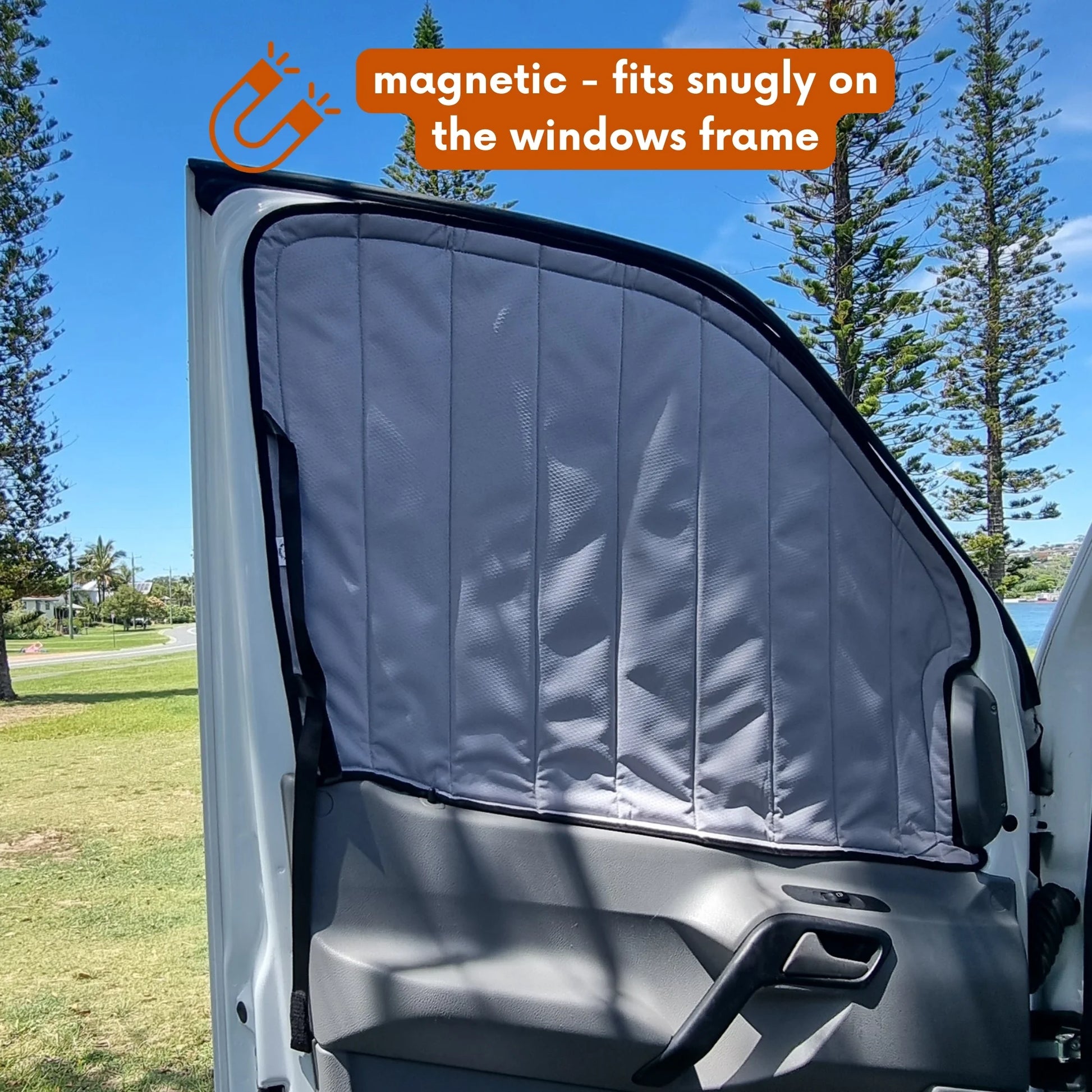 Transform your van into a cozy, all-season home with our premium insulated campervan window covers. Designed for optimal vanlife comfort, these magnetic window covers provide superior temperature regulation, keeping your campervan cool in the summer and warm in the winter. Our 100% blackout covers also guarantee total privacy and a restful night's sleep, making them a must-have van conversion kit accessory for any vanlifer or RVer.