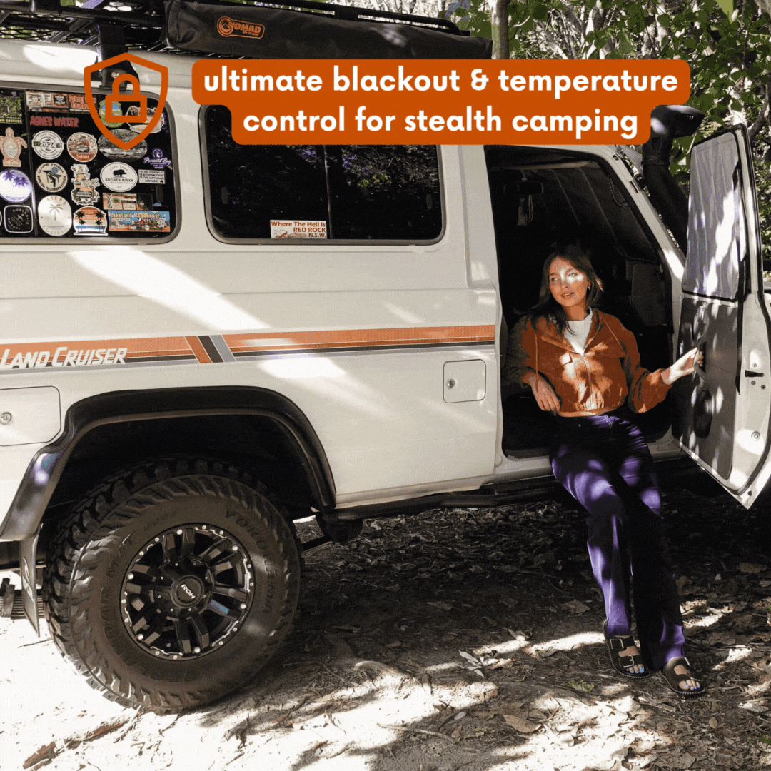 Used these on a recent trip. They genuinely cut the heat coming into the Troopy cabin by a crazy amount. Simple to use, just slap them on, and they stay put.